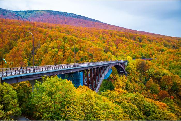 Jōgakura Bridge is a striking architectural feat in Aomori Prefecture, renowned for its breathtaking views of the surrounding mountains and valleys. Spanning the Jōgakura River, this bridge stands as one of the longest and highest arch bridges in Japan, offering an unparalleled vantage point for both autumnal foliage and snowy winter landscapes.